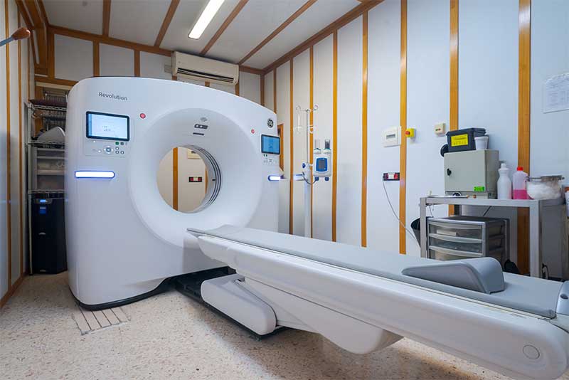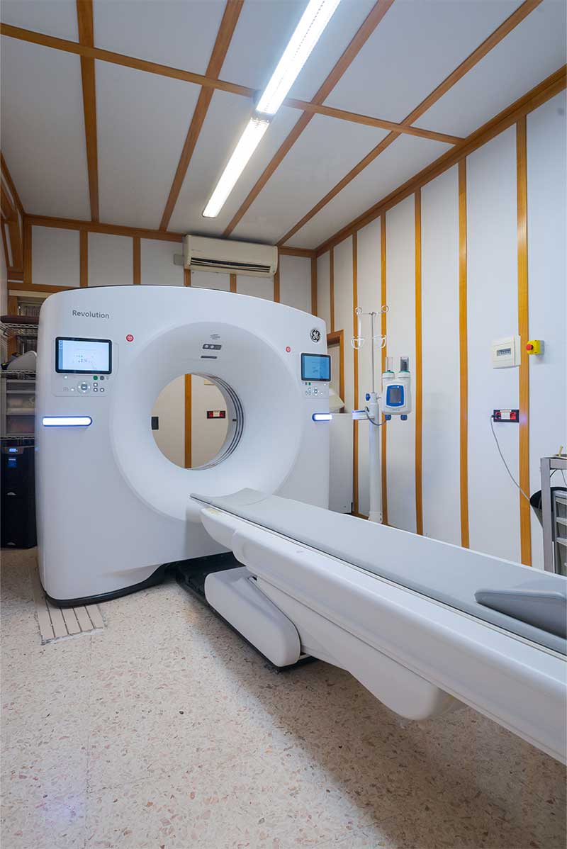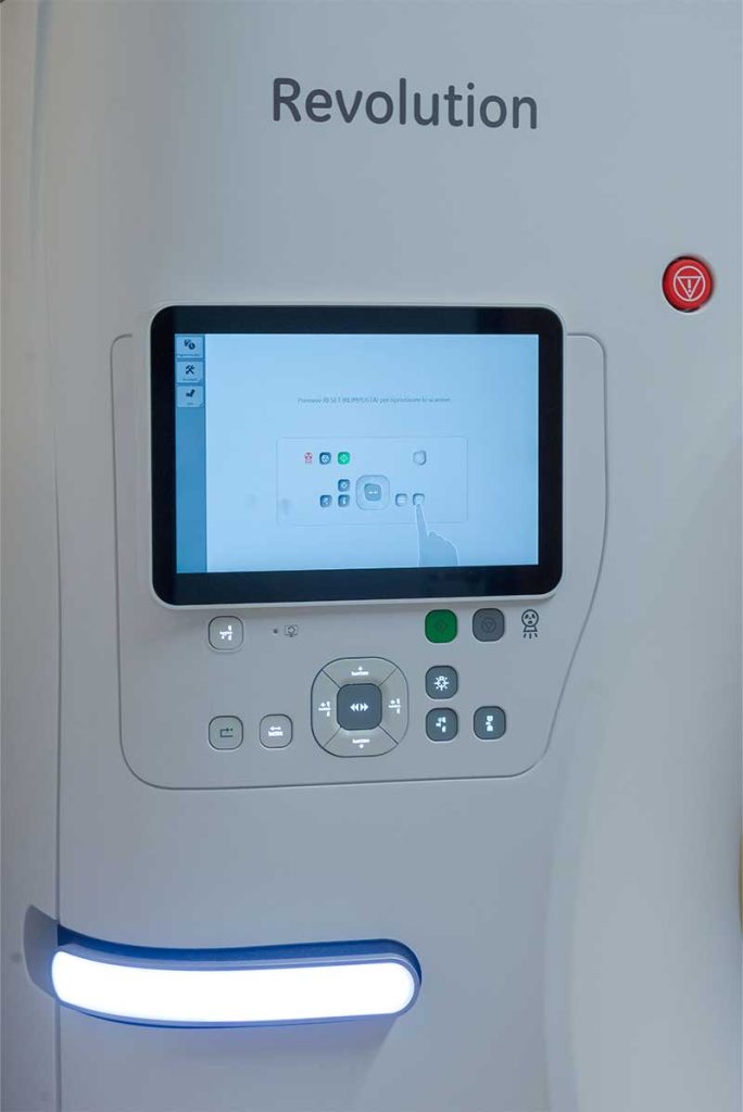 Lo studio è inoltre equipaggiato con la TAC volumetrica multistrato di ultima generazione GE Revolution Advance, una tecnologia TC 2D e 3D di ultima generazione con intelligenza artificiale integrata, capace di offrire immagini estremamente dettagliate riducendo la dose di radiazioni fino al 40%.